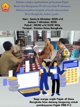Dalam rangka optimalisasi pelayanan Pajak Bumi dan Bangunan Perdesaan dan Perkotaan, Diinformasikan kepada seluruh masyarakat Desa Bengkala,