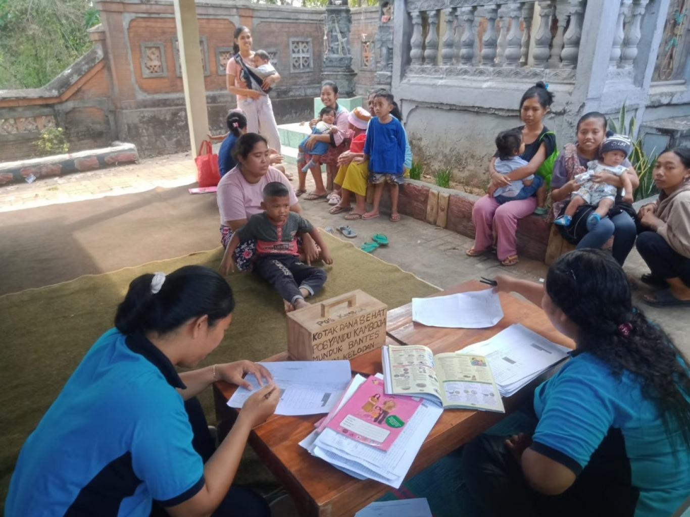 melalui Bidan Pustu Ni Nyoman Parnititi dan Tim, Bidan Desa, Kader Kesehatan, Kader BKB dan KPM di Balai Subak Abian Gapetak (Sekretariat Posyandu Kamboja) kemarin Jumat(10/10).