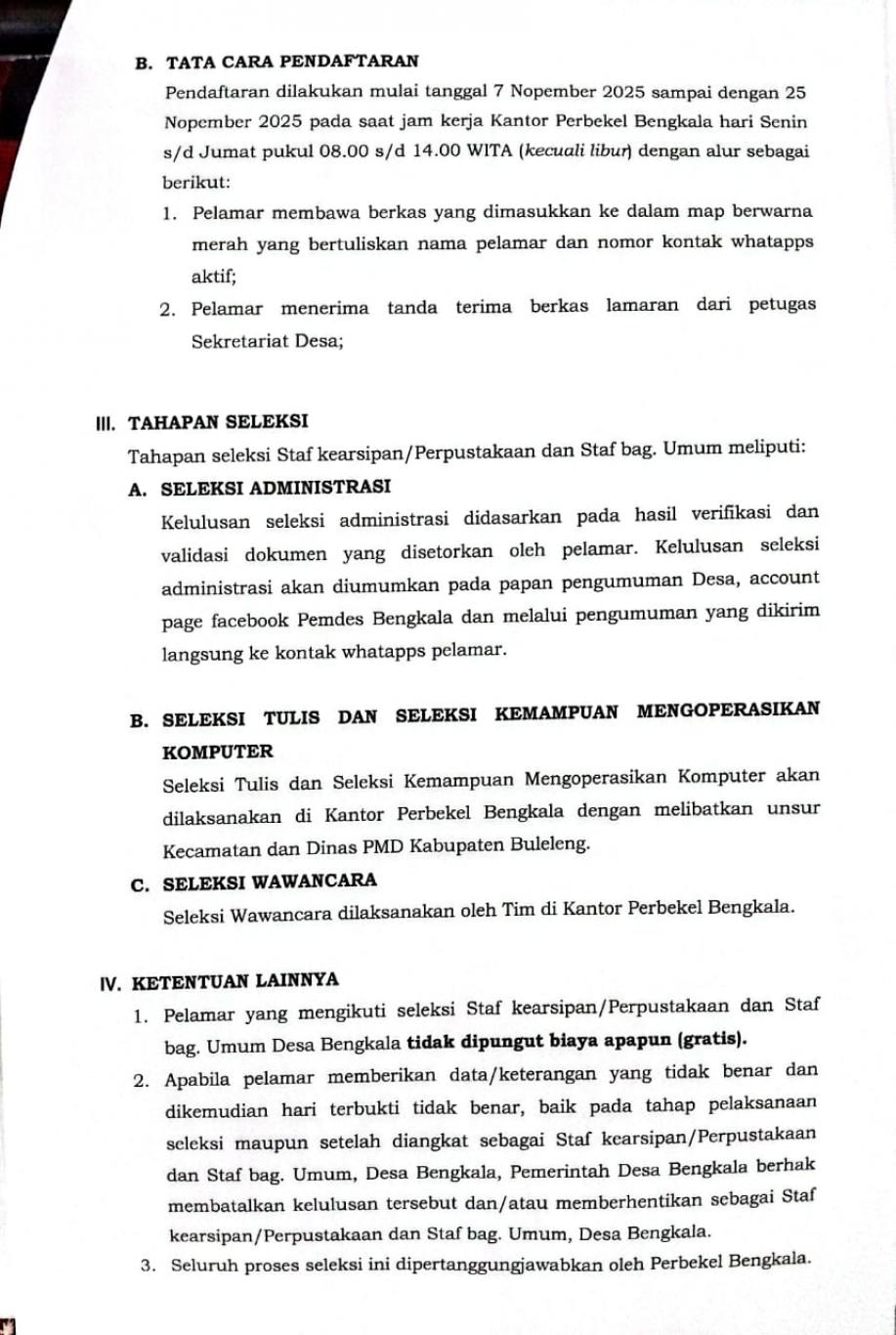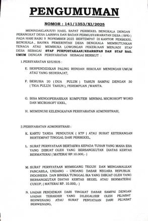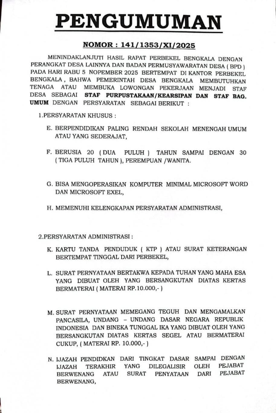 Tentang Perekrutan Staff Perpustakaan/Kearsipan Dan Staf Bagian Umum Pemerintah Desa Bengkala Tahun 2025