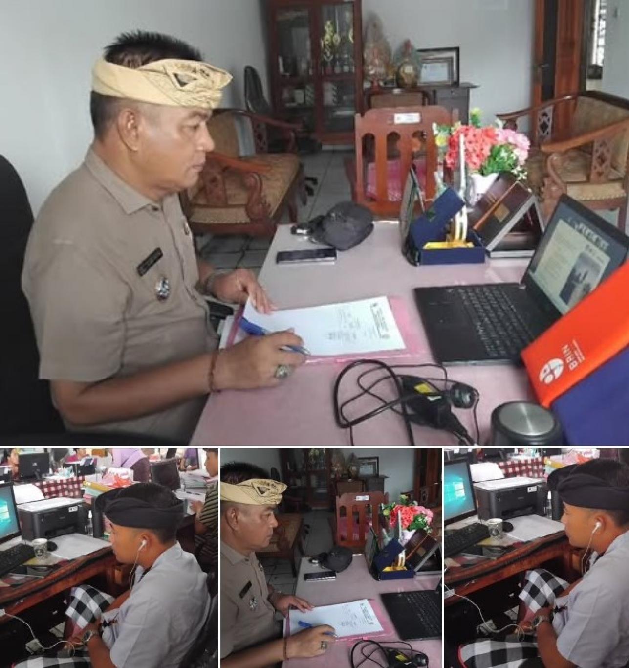 Perbekel Bengkala I Made Astika bersama Kasi Kesejahteraan I Kadek Sriparcana mengikuti kegiatan Zoom Meeting yang diselenggarakan oleh DPPM Ditjen Risbang Kemdiktisaintek hari ini Kamis (4/12).