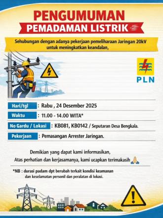 Sehubungan dengan adanya pekerjaan pemeliharaan Jaringan 20kV untuk meningkatkan keandalan,