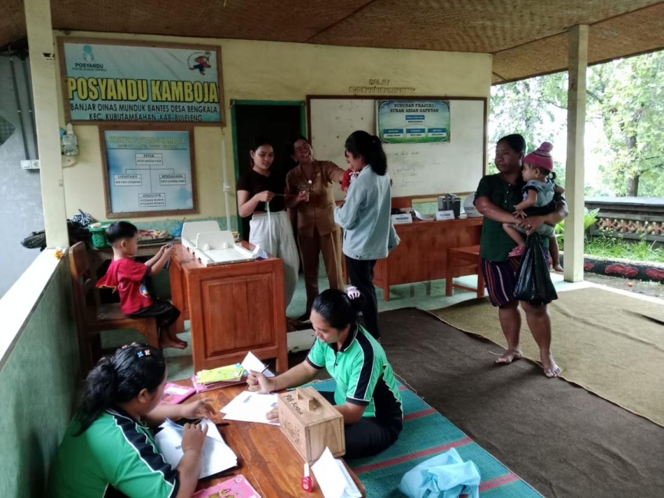 melalui Bidan Pustu Ni Nyoman Parnititi dan Tim, Bidan Desa, Kader Kesehatan, Kader BKB dan KPM di Balai Subak Abian Gapetak (Sekretariat Posyandu Kamboja) Senin(12/1).
