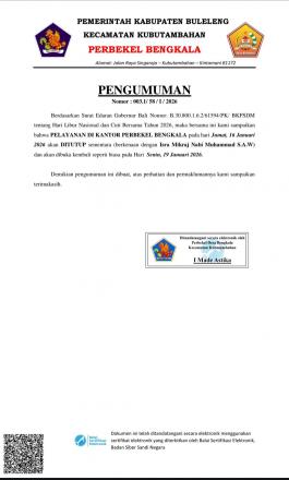 tentang Hari Libur Nasional dan Cuti Bersama Tahun 2026, maka bersama ini kami sampaikan bahwa PELAYANAN DI KANTOR PERBEKEL BENGKALA