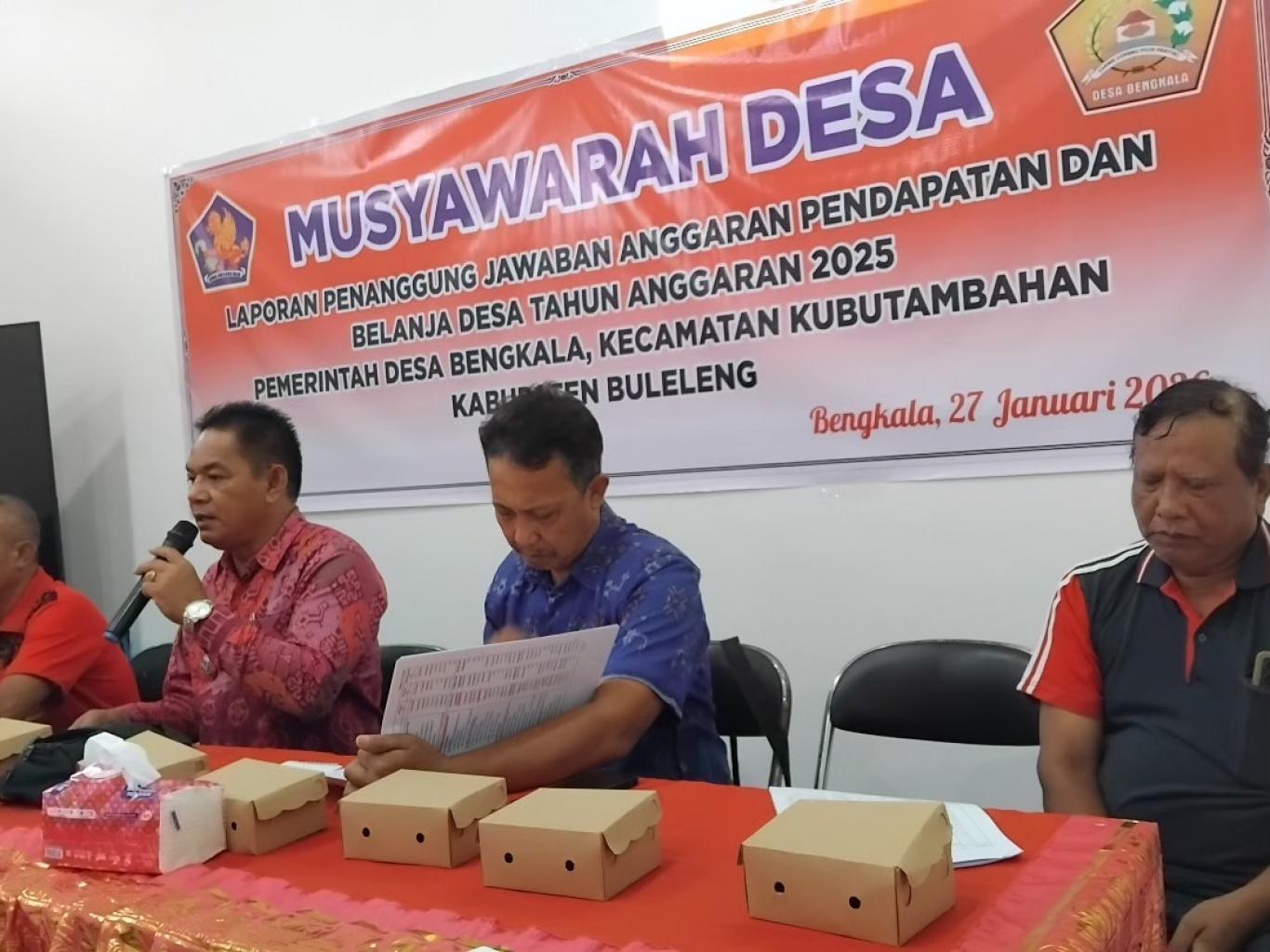 Dalam kegiatan tersebut, Pemerintah Desa Bengkala menyampaikan laporan pertanggungjawaban pelaksanaan Anggaran Pendapatan dan Belanja Desa (APBDes)