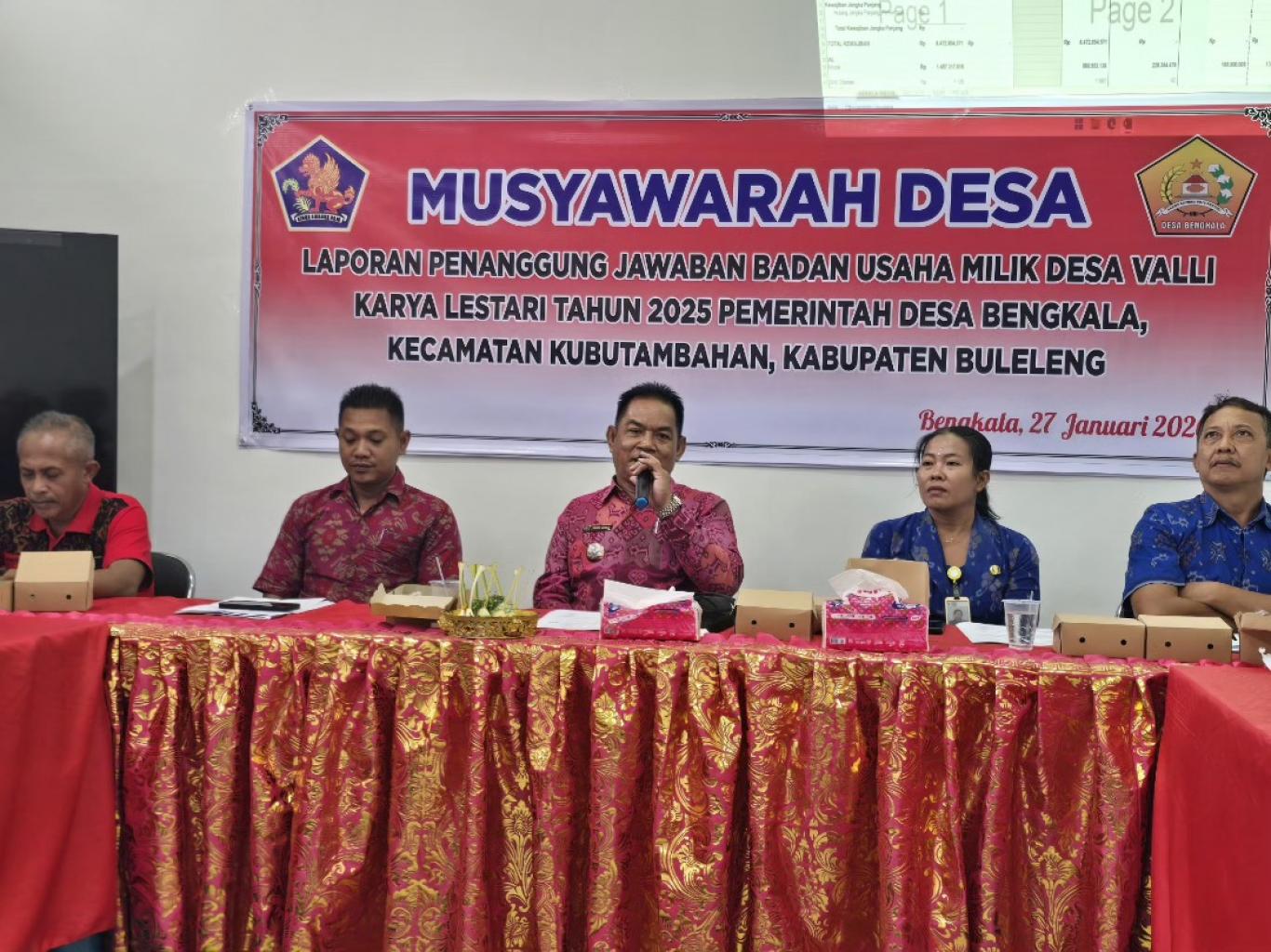 BUMDes Valli Karya Lestari Desa Bengkala melaksanakan kegiatan Penyampaian Laporan Pertanggungjawaban Pengelolaan BUMDes Tahun Anggaran 2025 bertempat di Ruang Rapat Kantor Perbekel Bengkala hari ini (27/1).