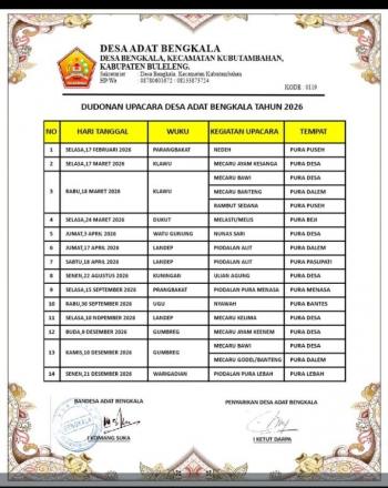- Dudonan Upacara Desa Adat Bengkala Tahun 2026