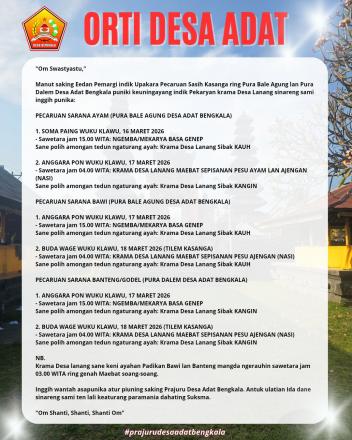 Inggih wantah asapunika atur piuning saking Prajuru Desa Adat Bengkala. Antuk ulatian Ida dane sinareng sami ten lali keaturang paramania dahating Suksma.